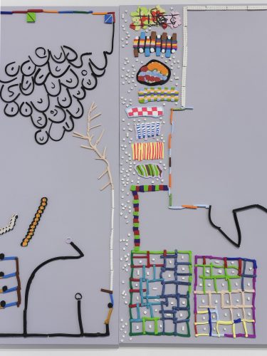 This Two, Sun You’s first solo show with Geary, takes place concurrently at Geary’s two locations: Bowery in the Lower East Side and Main street in Millerton, New York. Geary features You’s clay- based work which includes oven-baked polymer clay forms mounted on painted wood panels, sculpted clay forms in cardboard boxes, and a separate body of sculptures made of mixed media — metal wire, razor blades, beads, and artificial flowers “held by magnets and gravity”, as described by Michael McCanne in the press release. The show runs through March 5th, 2021.