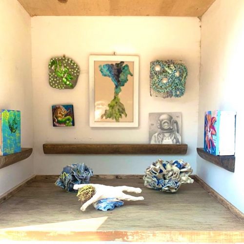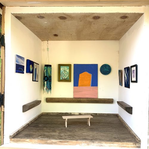 Back in about 2009 friends invited artist Sunny Chapman to a gallery opening in their apartment, a gallery of tiny art in an about 1 x 2 foot rectangular inset in one of their apartment walls. Sunny Chapman loved the idea and wanted to do one in her own apartment too but since they lived close by she thought it would be disrespectful. Yet, the idea of making a tiny gallery was always nagging at her.