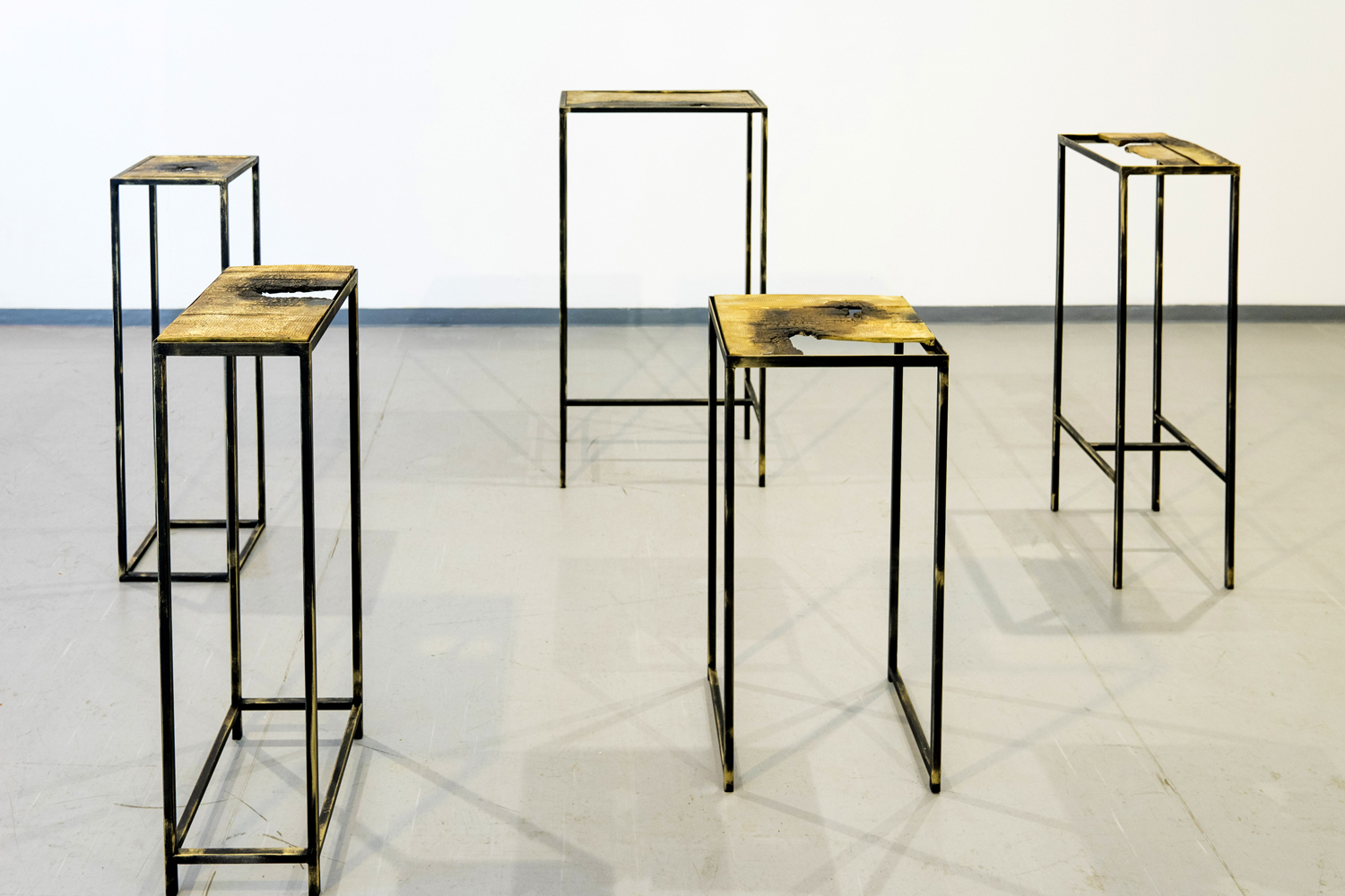 [caption id="attachment_1606" align="aligncenter" width="500"] Keren Anavy & Tal Frank, Compositions for Stones of Gold, 2018, Installation view, site-specific installation, wood, The Gallery of the Cultural Institute Mexico-Israel, Mexico City, oil on linen, each painting 76.7X37.4″, wood, Pyrite stones, video animation screening. Photo credit: Zony Maya.[/caption]