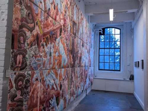There are many thought-provoking shows in Philadelphia this July. Beginning at Fleisher Art Memorial, three innovative Philadelphia sculptors combine materials in unexpected ways to reflect on intimacy, vulnerability, and natural phenomena. At the Fabric Workshop in center city, artist John Jarboe brings her cabaret aesthetic to create a stunning immersive experience titled Rose Garden following her life and gender journey. In Kensington, at Peep Projects Todd Stong’s delicate drawings and wall-sized multi-panel monotype reflect on the complexities of history, contemporary life, and what the artist terms queer cultural production.