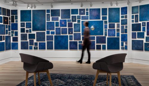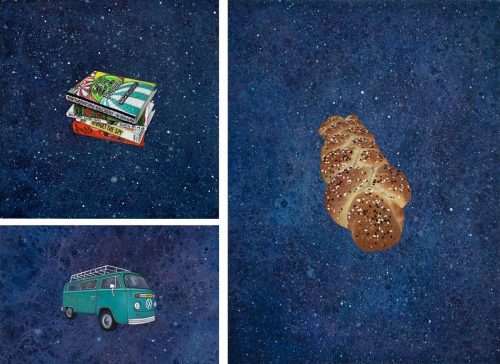Big Bang Votive, Yvette Molina’s collaborative storytelling art installation has evolved over fifteen weeks, utilizing the Mitzi and Warren Eisenberg Gallery at the Visual Arts Center of New Jersey through January 18th, 2021. Yvette Molina creates an immersive audio-visual experience — accompanied by a 30-minute surround sound composition played on a loop, her installation includes three hundred paintings of starry skies, some with votive symbols of delight or love taken from stories gathered from the public, a work-table with the artist’s materials, and an on-going “story catcher” project involving public participation.