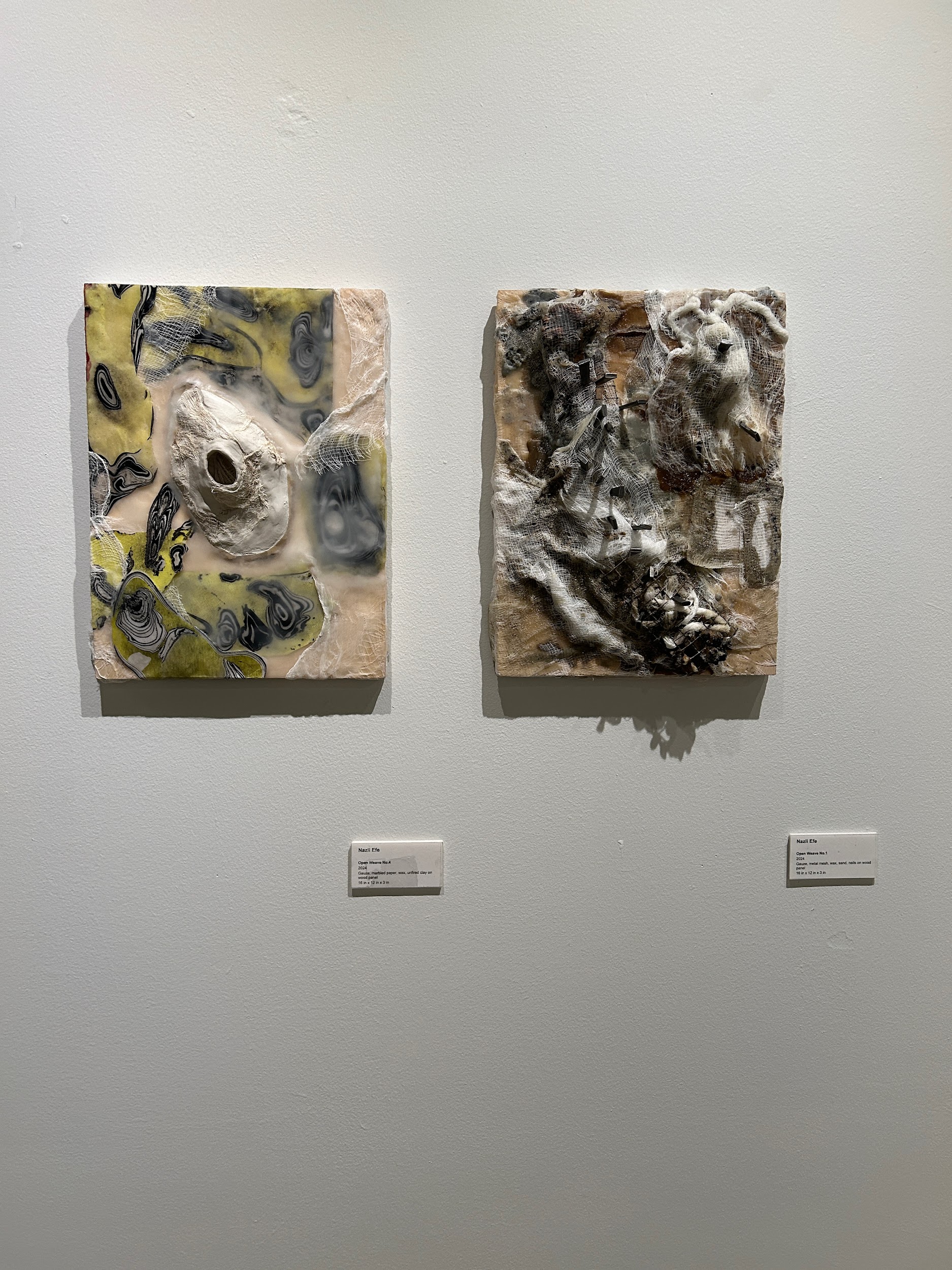 Yerang Moon’s ceramic sculptures and the wall work of Wei Yuan both capture the essence of a presence as well. While the wall work is an actual latex cast of the artist’s body, Moon’s ceramics become vessels for which emotions and experiences are held. In reconstructing the human form, both artists allow the opportunity for viewers to question the human form and consider the space that it exists within, because that is where what makes us human comes from. The space holding experiences, observations, explorations, failures and triumphs becomes very important, as it is that space, full of everything in between, that makes us also human.