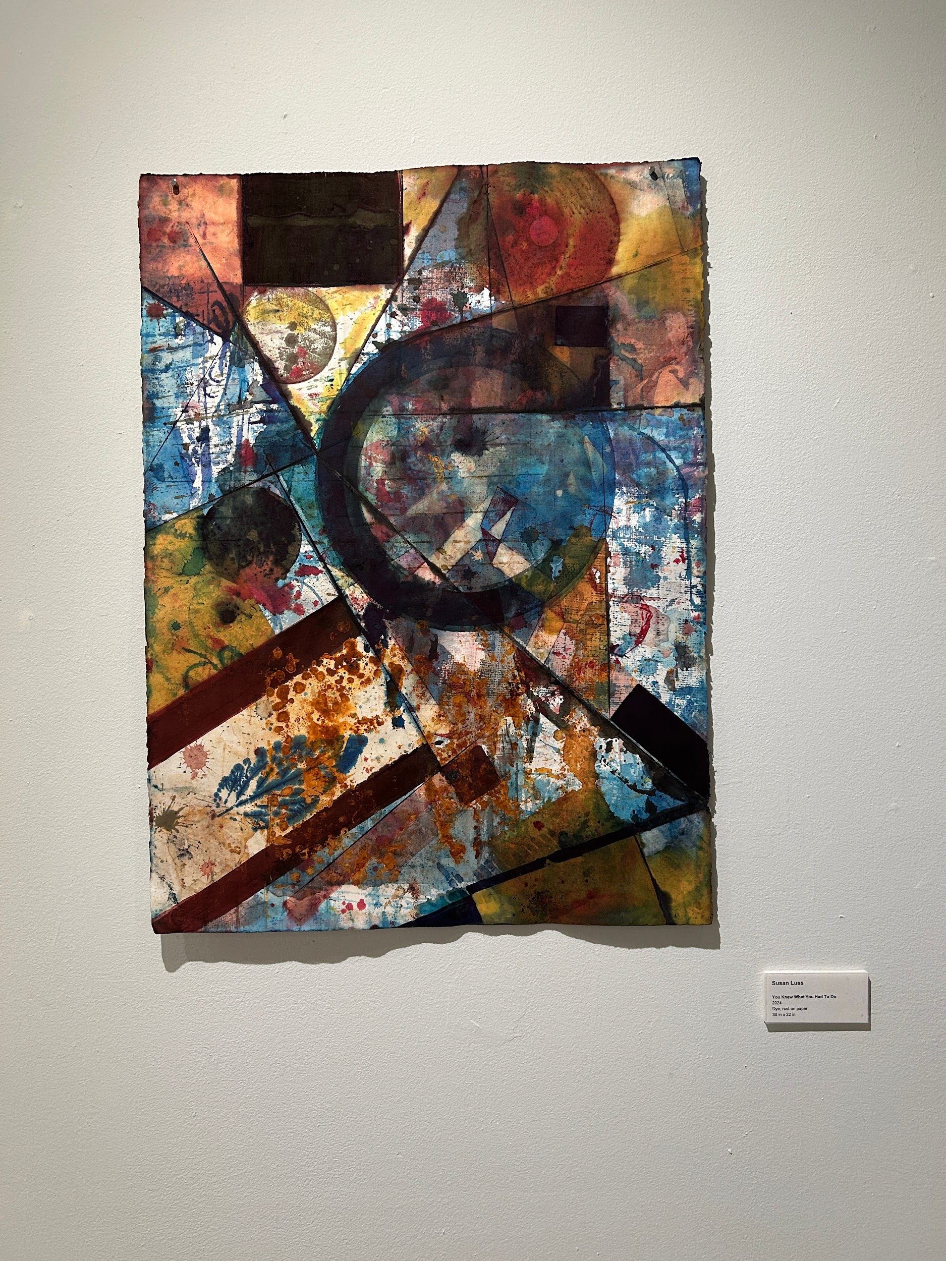 Works such as Open Weave No 1 and No. 4, from Nazli Efe, Untitled textile works from Elizabeth Hackenberg, or You Know What You Had To Do from Susan Luss each use space, surface, form, and artist interventions to show presence. With Luss using rust and dye to record time, the artist’s intervention becomes important, like Hackenberg choosing pieces for the wall sculpture, the artist’s process and hand in the creation of the work becomes a crucial aspect to the existence of the piece. While Nazli Efe’s Open Weave pieces offer a series of textures and layers that we must look through and excavate to uncover the meaning. Efe wove these abstract shapes and forms together to create this new entity; one that welcomes us to look inside, but one that we cannot fully see either.