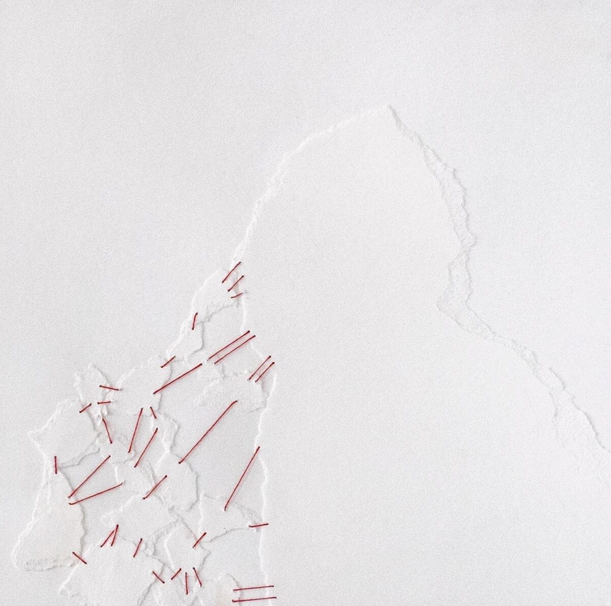In my work, mending is very visible, whether through the use of feminine craft practices to imagine repairing an architectural space, as in the interventions for the Textures of Feminist Perseverance exhibition at the James Gallery, or in the falling and mending drawings and plaster sculptures. Thread, like wire, forms a linear connection between forms; it is also a material that we encounter every day in our clothing.
