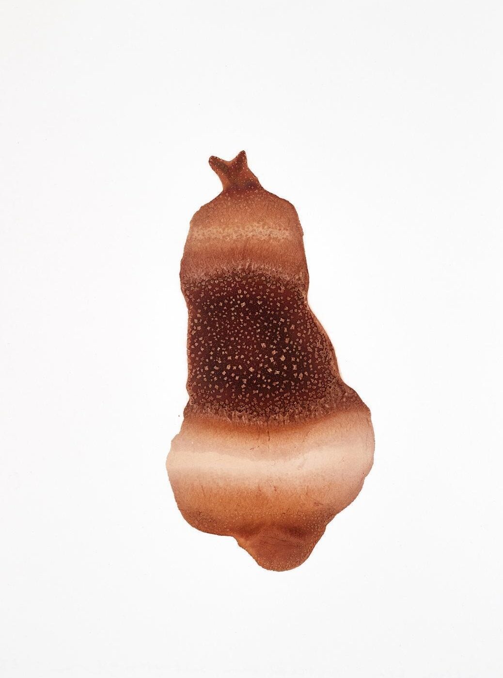I went to Costa Rica for an “eco” residency in 2021 and became obsessed with the leaves of the Cecropia tree. I was amazed by their giant silhouettes in the sky and their strangely curled leaves on the ground. Investigating these curled and ruffled leaves that have fallen over thirty feet to the ground became a passion. Within a day or two, the leaves dehydrate, curling into themselves until they are twisted forms as small as six inches long. This change I observed differs from some of the other changes to natural forms that I am interested in, but in other ways, it is similar.