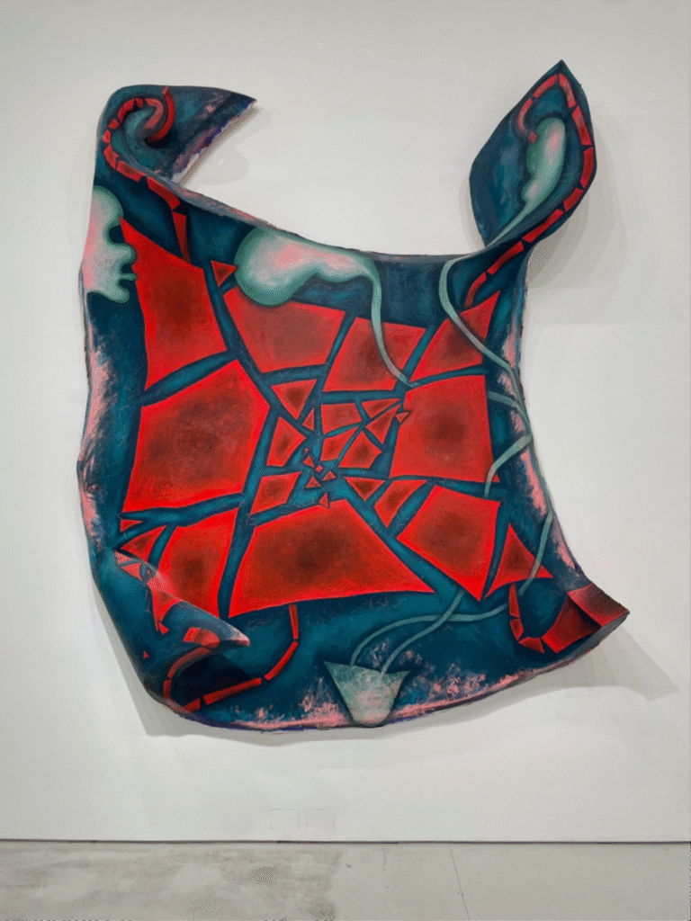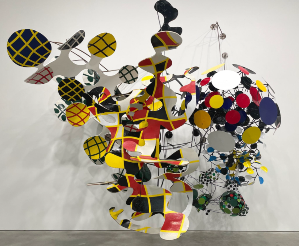 Color is central to her language: bold and vivid, it animates geometry with light and emotion. The work brings to mind a dialogue with both Mondrian’s hard-edge jazzy rhythm and Alexander Calder’s mobiles, which balance the pull of gravity and air. In contast to Calder, Pfaff’s welded constructions burst from the wall and gravitate toward the ground, less floating than erupting, more explosive than airy. Her forms seem to grow out of the architecture itself, claiming wall, air, and floor as parts of the same field.